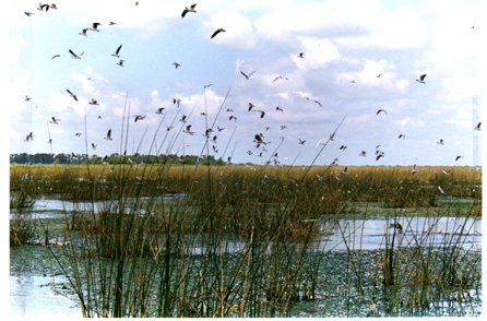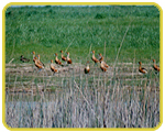 Ejemplares del género (Calidris) , denominados comúnmente playeros, visitan las lagunas en primavera verano, no nidifican, tambien se los observa en las costas marinas. |