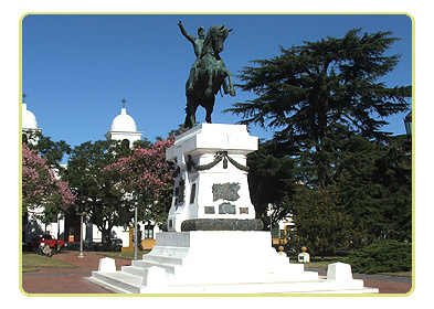 Algo real quedó de esta fiesta: la estatua del General San Martín. Levantando el basamento, se transportaron por tren las diversas partes que se depositaron en el centro mismo de la plaza que nos ocupa. Todo el mundo vigiló, embobado, el armado y emplazamiento del monumento. Se inauguró oficialmente el Día de la Patrona , 24 de septiembre de 1912, con una fiesta espectacular, con un pueblo en suspenso y las campanas echadas a vuelo, el monumento apareció un instante y volvió a desaparecer, oculto por una lluvia de flores. casi un acto de magia.